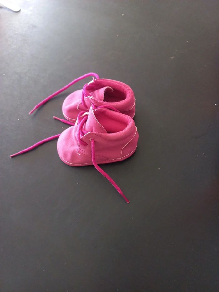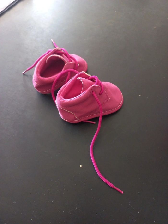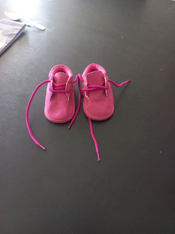 Vends 1 paire de chaussons bébé fille en daim de couleur rose taille 0,6mois.2 euros
