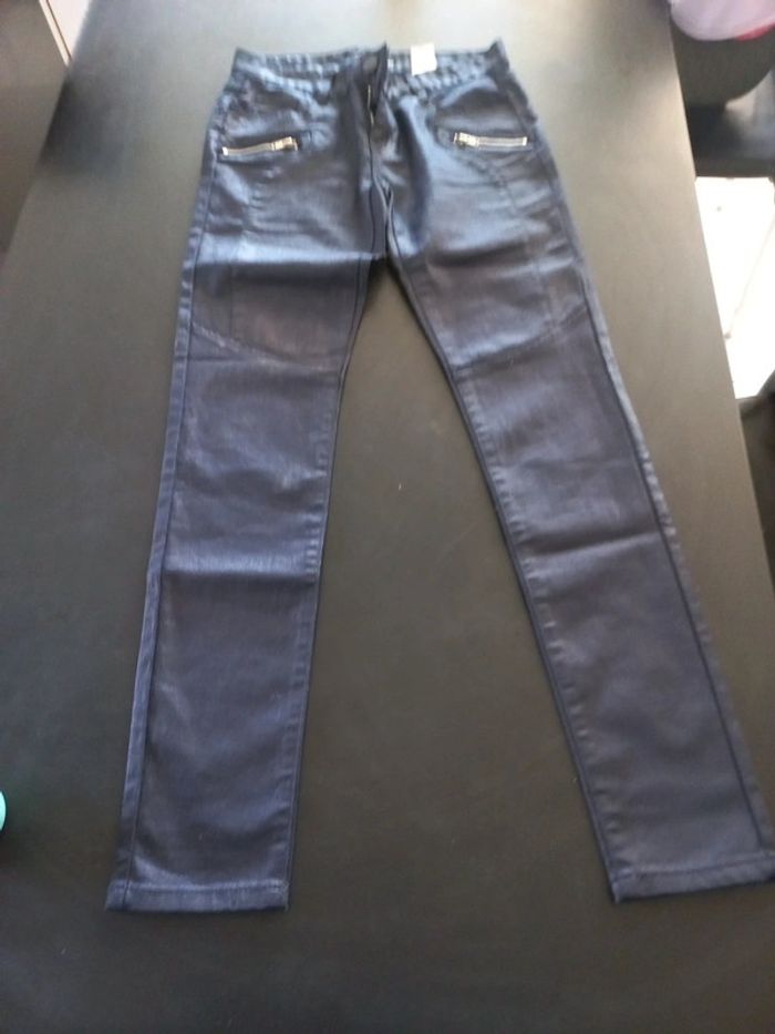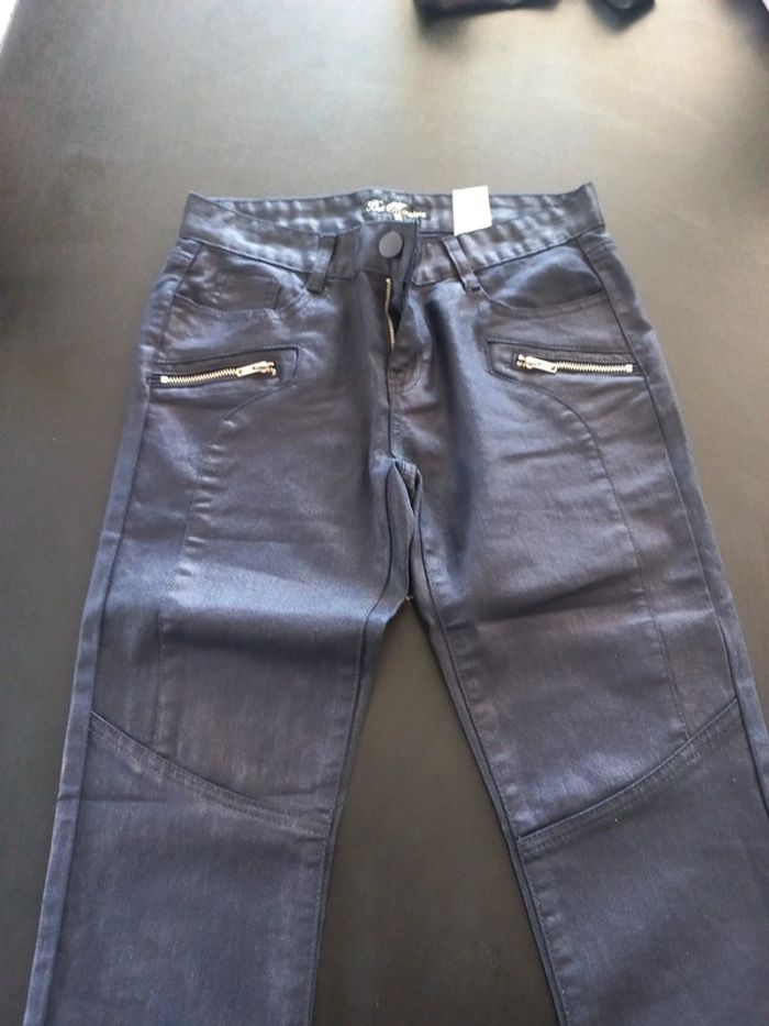 Vends 1 jean simili bleu marque Best Mountain en taille 38 état neuf jamais porté car mon ventre ne rentre pas