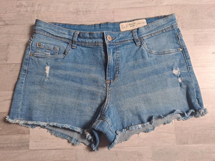 Short en jean taille 40 4 poches Fermeture +bouton Marqué taille 42 mais taille petit Matière : coton elasthanne