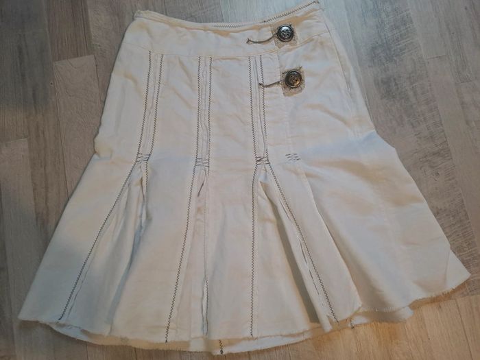 Jupe blanche promod taille 36 Longueur totale environ 57 Fermeture sur le côté Fentes sur le devant Plus d'étiquette de matière mais en coton je pense