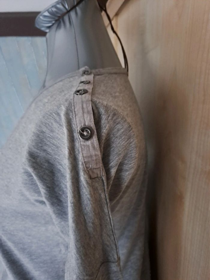 Tee-shirt manches 3/4 taille 36 gris Aisselle à Aisselle 46 cm Longueur totale environ 58 cm Matière : coton viscose elasthanne