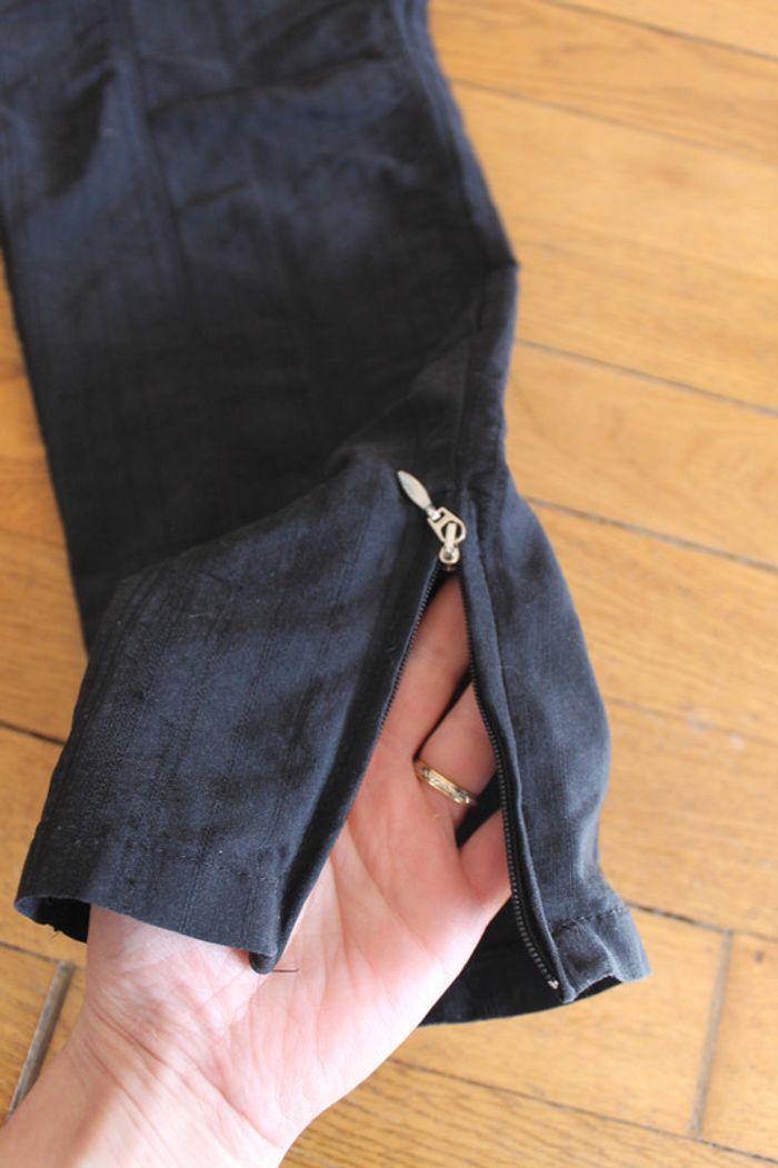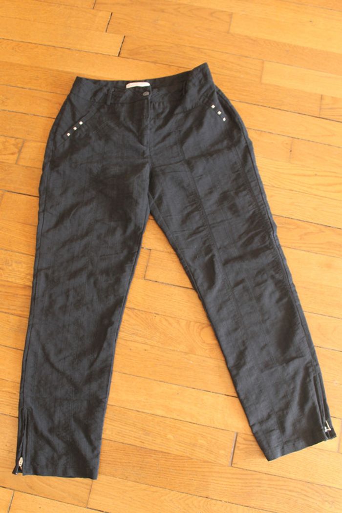 pantalon léger Armand Thiery taille 36 noir fermeture + bouton ouverture dans le bas des jambes fausses poches 47% coton, 47% polyester