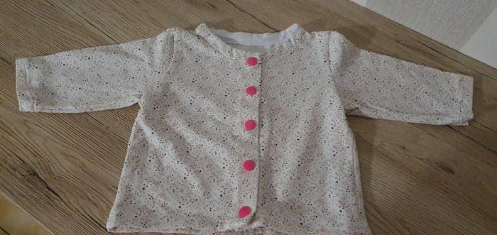 Gilet sweat léger bébé 🚼 Pressions rose Taille 3 mois Marque autre Couleur blanc avec motif Maison non fumeur Linge lavé avec lessive bébé