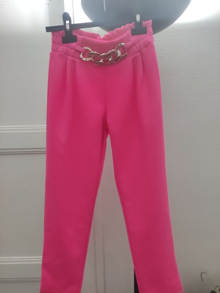 Pantalon Style legging Couleur fushia Elastiqué dos Avec chaîne bijou devant Taille 128/134