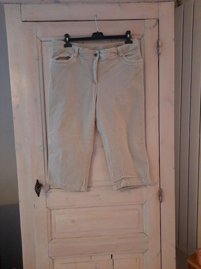 Pantacourt velours côtelé. De couleur beige. Taille 46 de chez C&A. Petite tâche voir photo