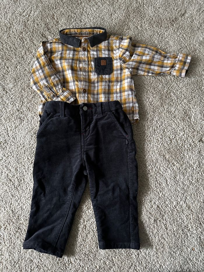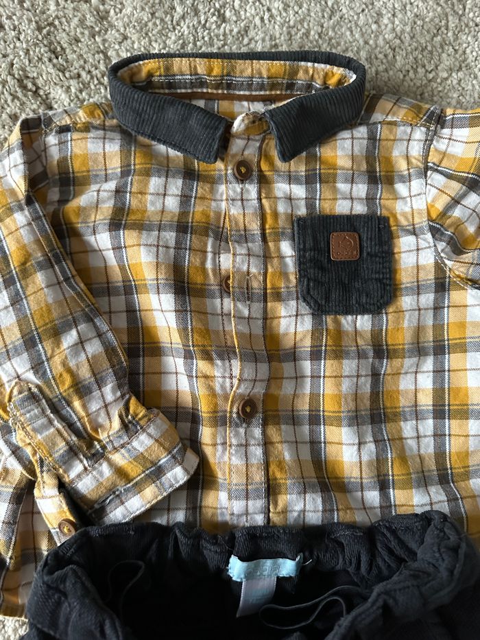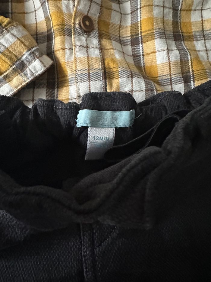 Pantalon noir velours et chemise à carreaux jaune Très bon état