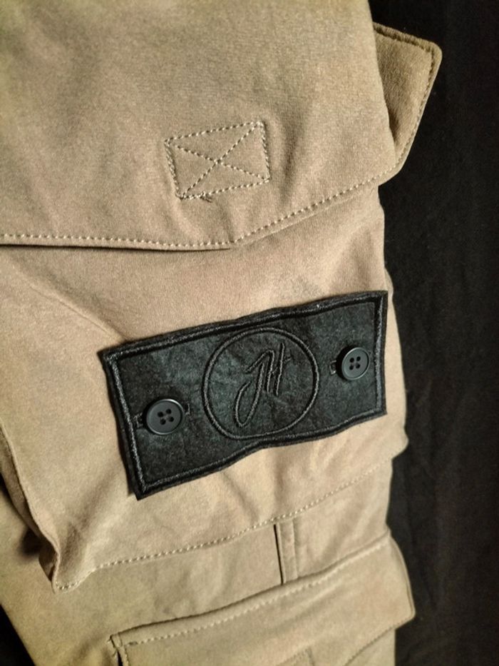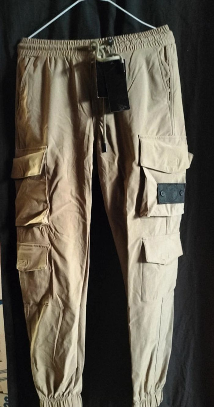 Pantalon forme cargo multi poches, bas avec élastique. Kaki. Taille S. Jamais porté. Avec étiquette. Neuf.