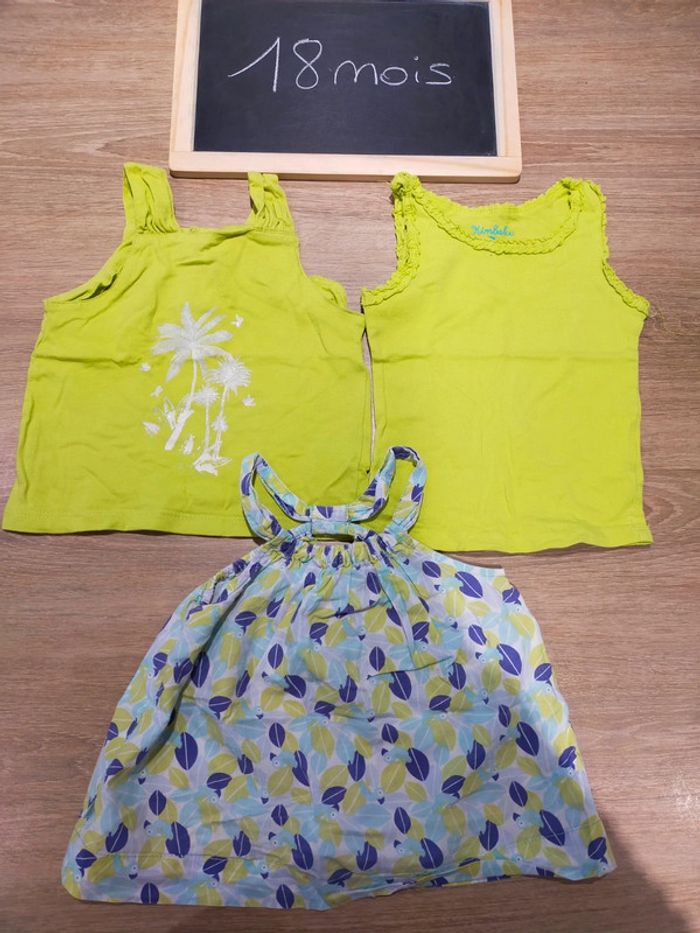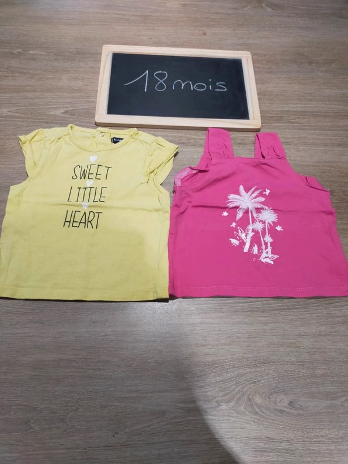 Lot de 6 t-shirts/débardeurs fille taille 18mois Excellent état Un seul petit accro sur le débardeur vert, à peine visible Différentes marques