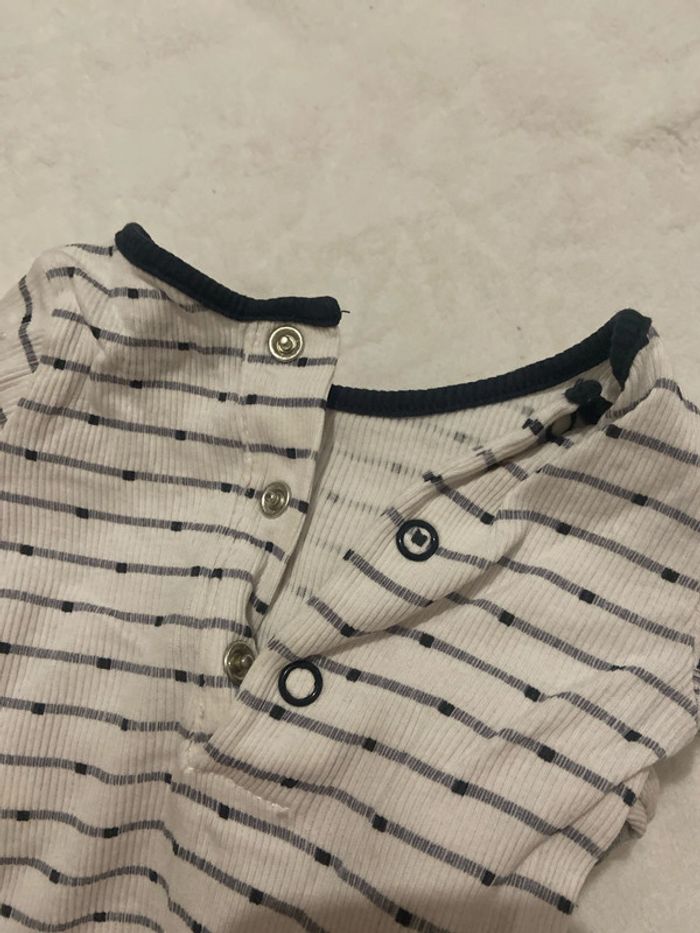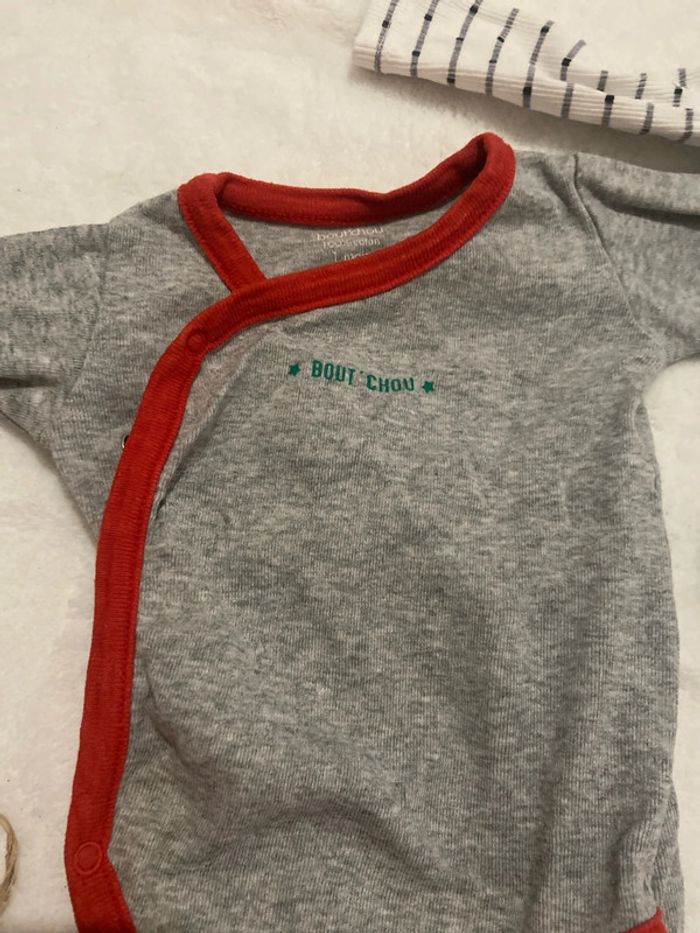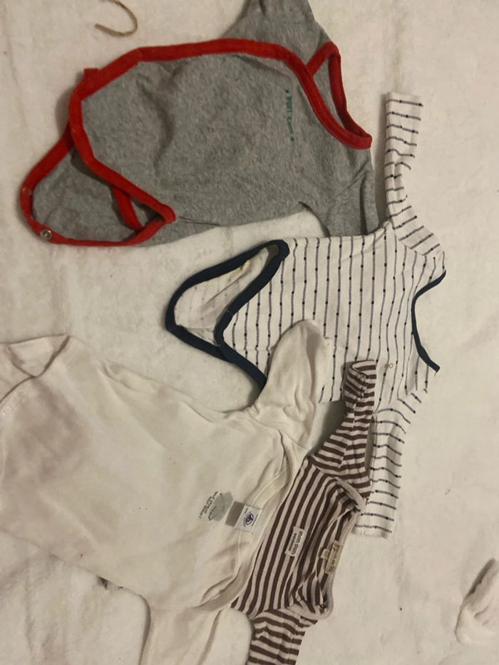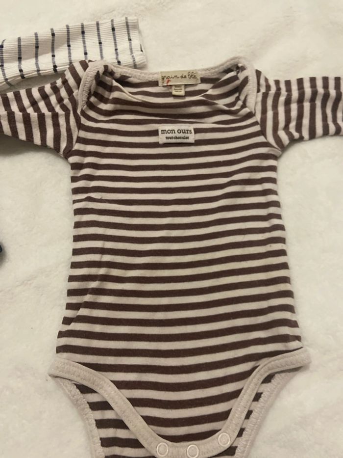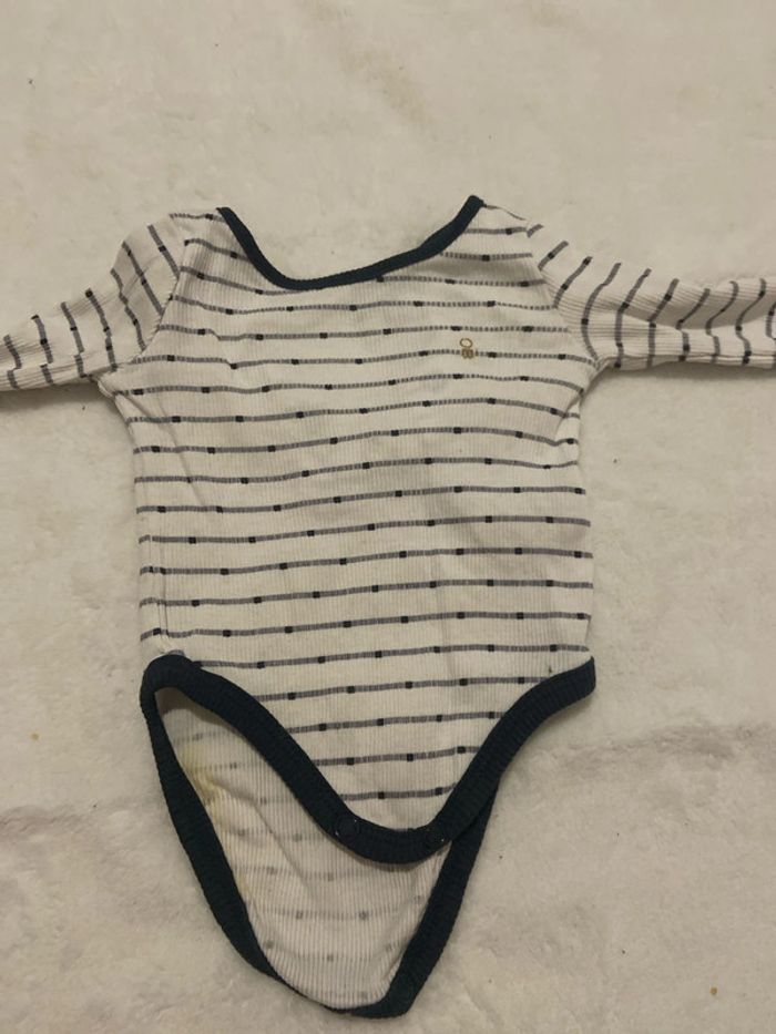 Un body légèrement taché (voir photo) Marques : Okaïdi Bout’chou Petit bateau Grain de blé