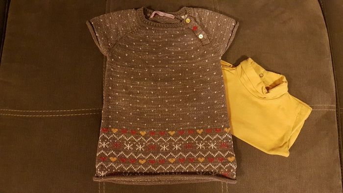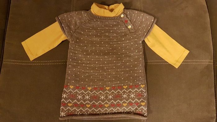 Robe pull, bien chaude. Gemo Avec tee shirt col roulé manches longues. Taille 12 mois.