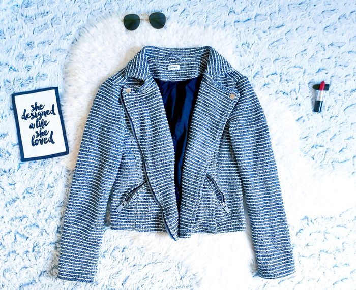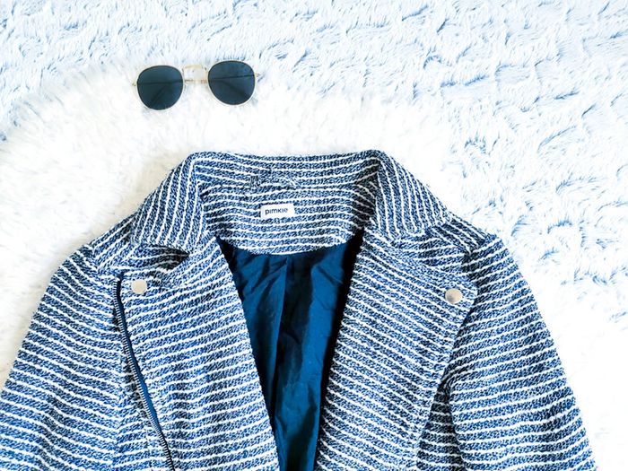 Jolie veste rayée noire et blanche 🖤 C'est une taille XS ou T.34 😘 En très bon état général 👍