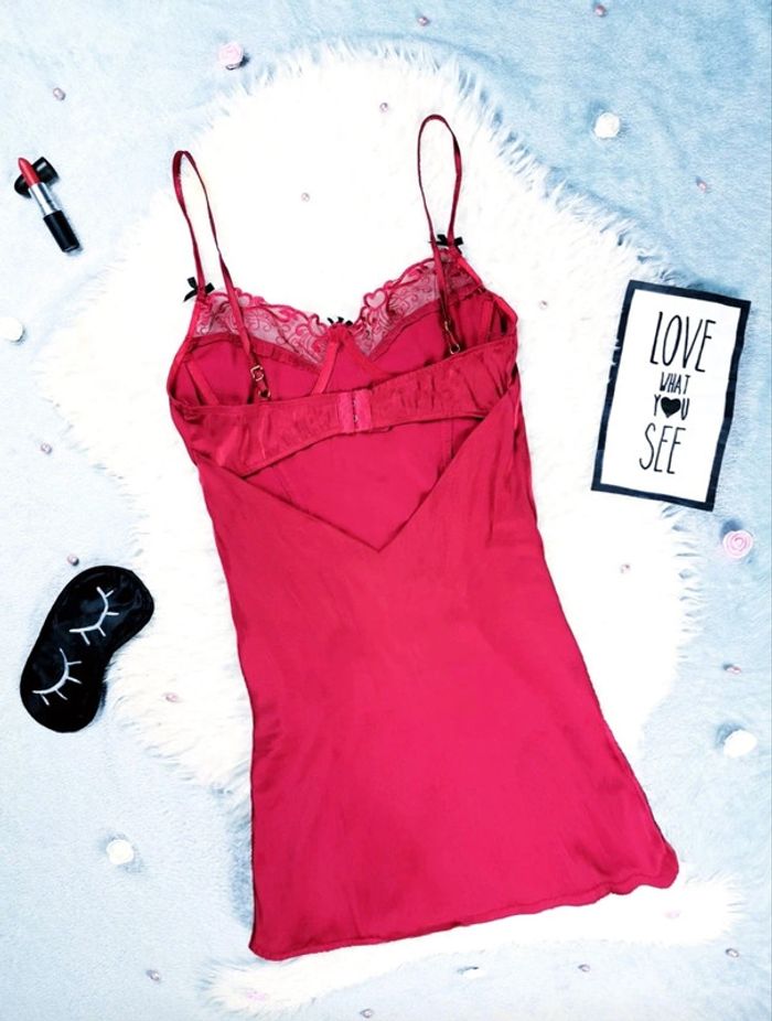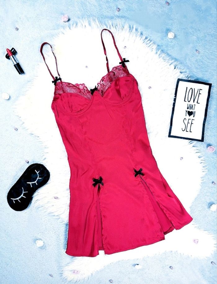 Nuisette rouge vin légèrement satinée et fendue avec dentelle au décolleté en V - T.S ou T.36 🖤 - photo numéro 1
