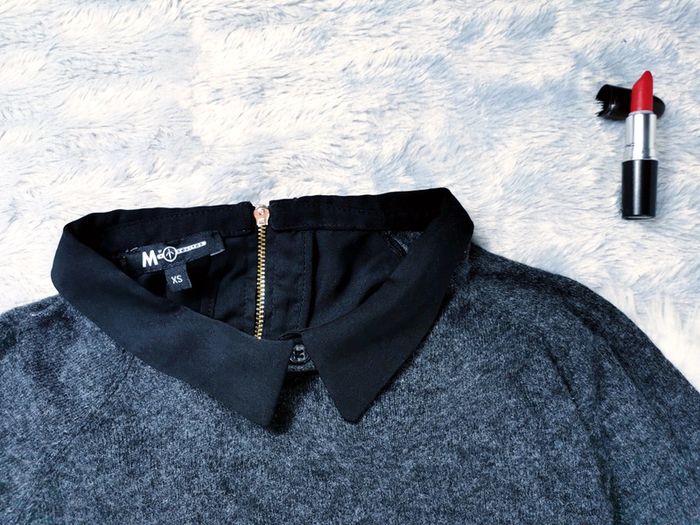 Top gris anthracite et noir avec mousseline et col - T.XS ou T.34 🖤 - photo numéro 2
