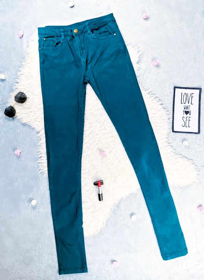 Joli jean slim taille haute couleur vert sapin 🖤 C'est une taille S ou taille 36 😘 En très bon état général 👍