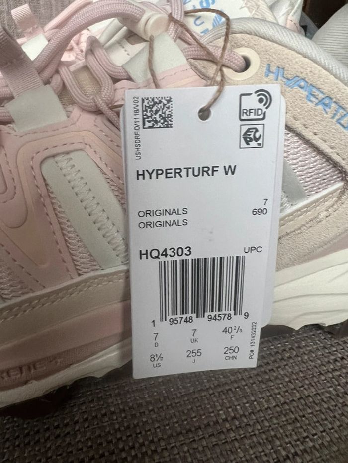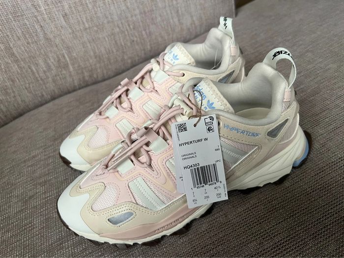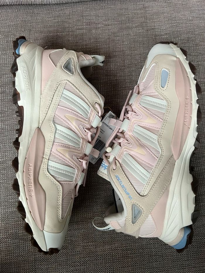 Adidas Hyperturf W Wonder Quartz • Modèle : Hyperturf W • Marque : Adidas • État : Neuf, jamais porté (semelle intacte) sans la boîte • Taille : 40,5 • Couleur : Rose Quartz / Bleu / Beige • Prix : 75€ #sneakers #adidas #pink #quartz #quartzrose #wmns #hyperturf #rosepale #beige #beigecrème #adidasoriginals #basket #neuf #vinted #vente