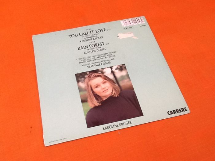 Vinyle 45 tours Karoline Kruger You call it love (1987) Carrere 14.556 A Karoline Kruger*– You Call It Love Lyrics By – J. Jordan* Lyrics By – J. Jordan* 4:35 B Rustless Doubt– Rain Forest 5:20