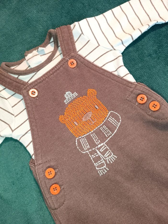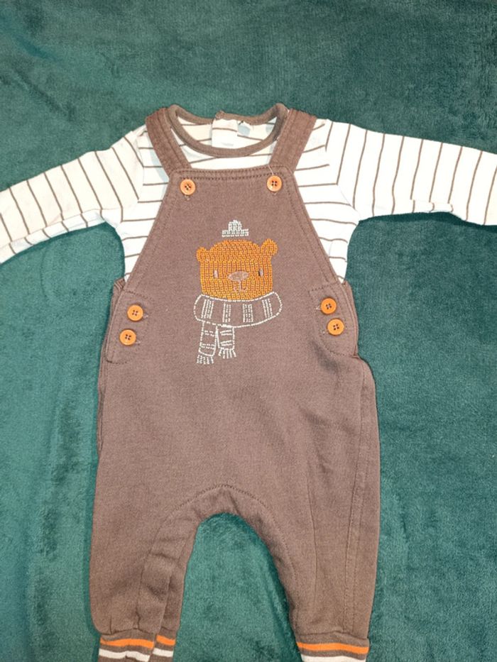 Ensemble salopette + t-shirt manches longues à rayures. 3 mois
