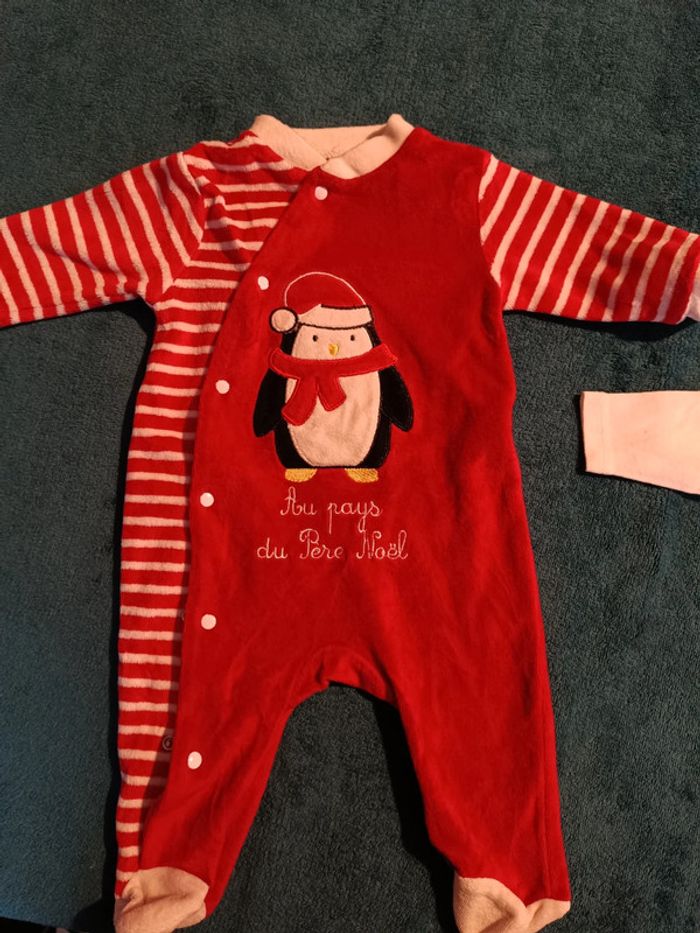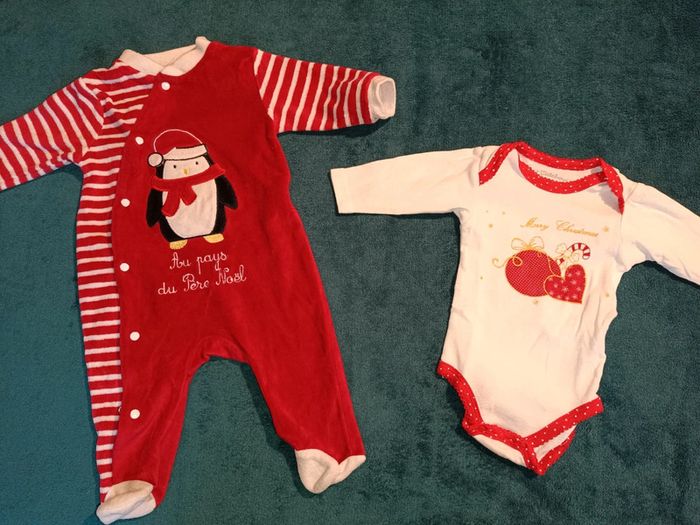 Pyjama velours + body manches longues de Noël. Marque: Plus et Kiabi 3 mois