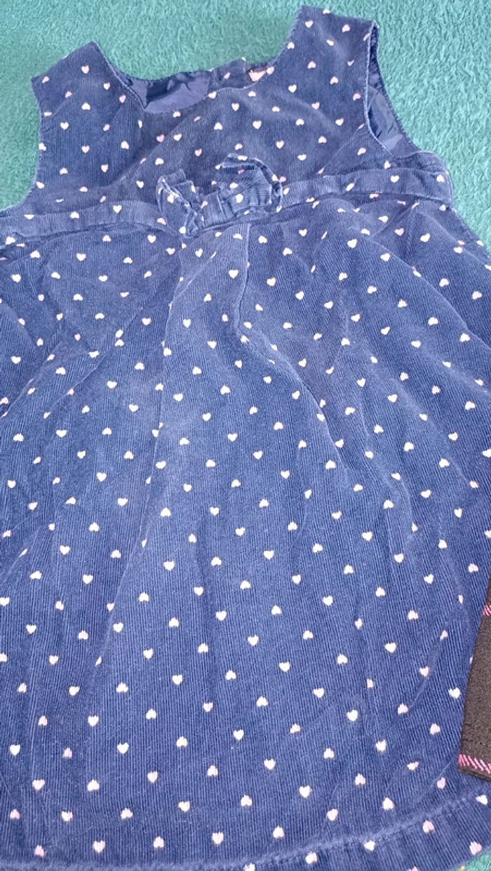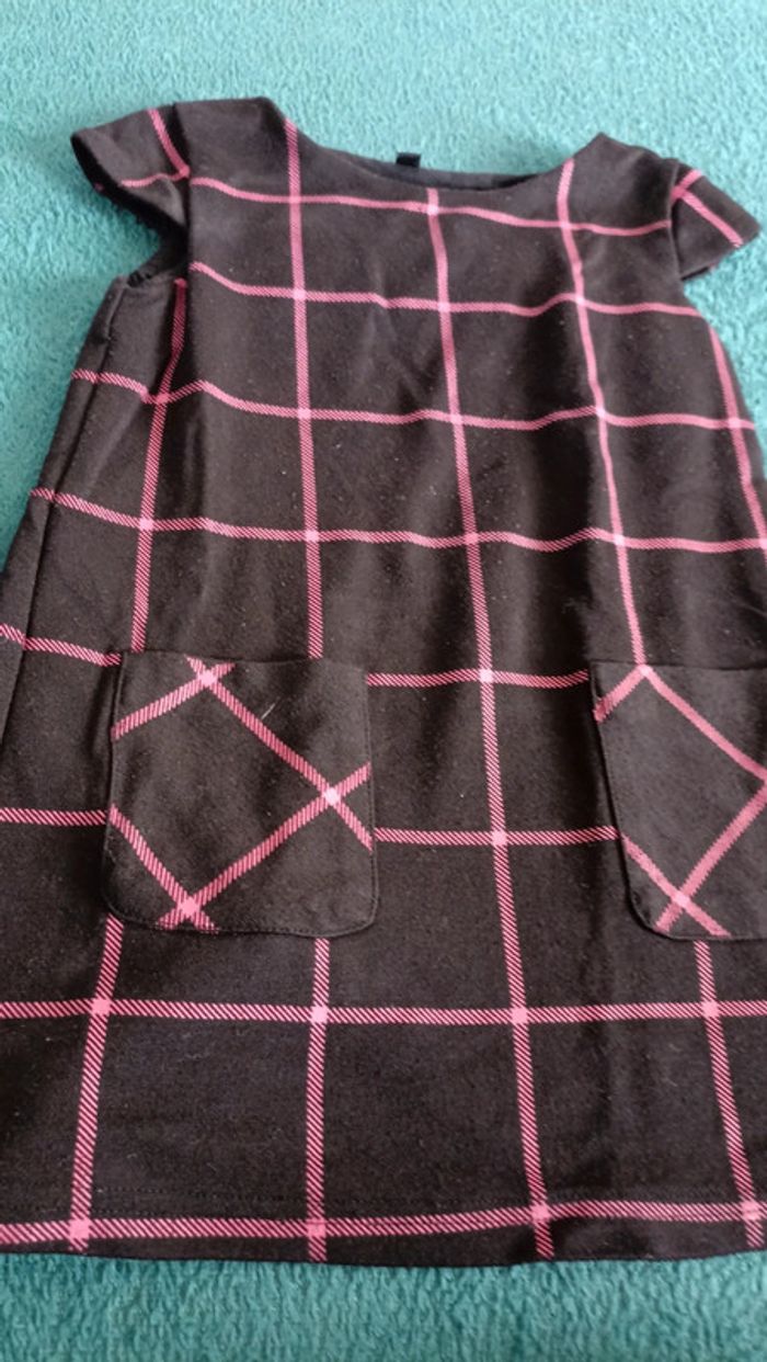 Lot de 2 robes 1 bleu avec motifs petits coeurs (Primark taille 24-36mois 98cm) 1 noir à carreaux rose ( marque Plus taille 3 ans)