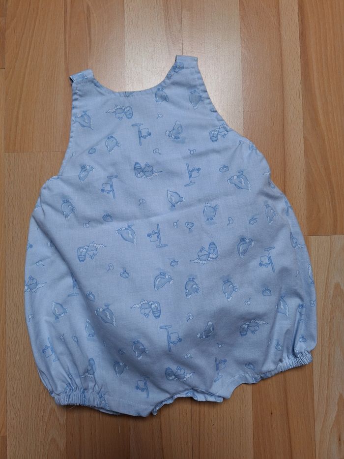 FILLE 1 MOIS N°722 Combi bleu ciel Imprimé Bretelle/ entre jambes bouton 50 % coton 50% polyester Taille 1 mois 1€ #kelly_fille1mois