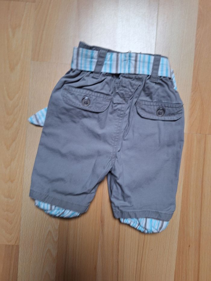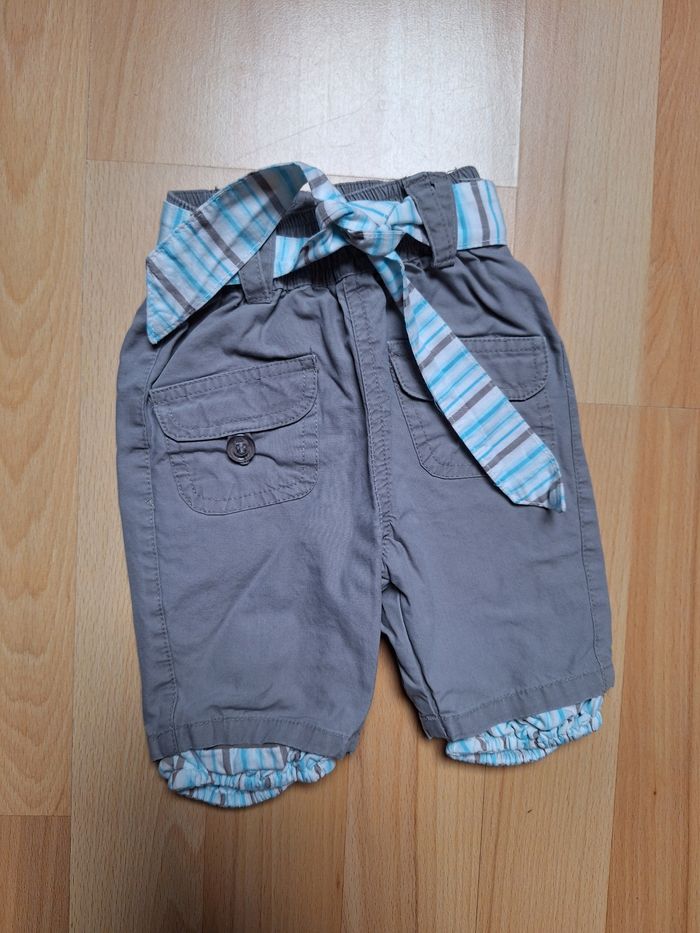 FILLE 1 MOIS N°728 pantalon été Gris , ceinture tissus ( turquoise) Taille élastique 100% coton Taille 1 mois Tape à l oeil 3€ #kelly_fille1mois