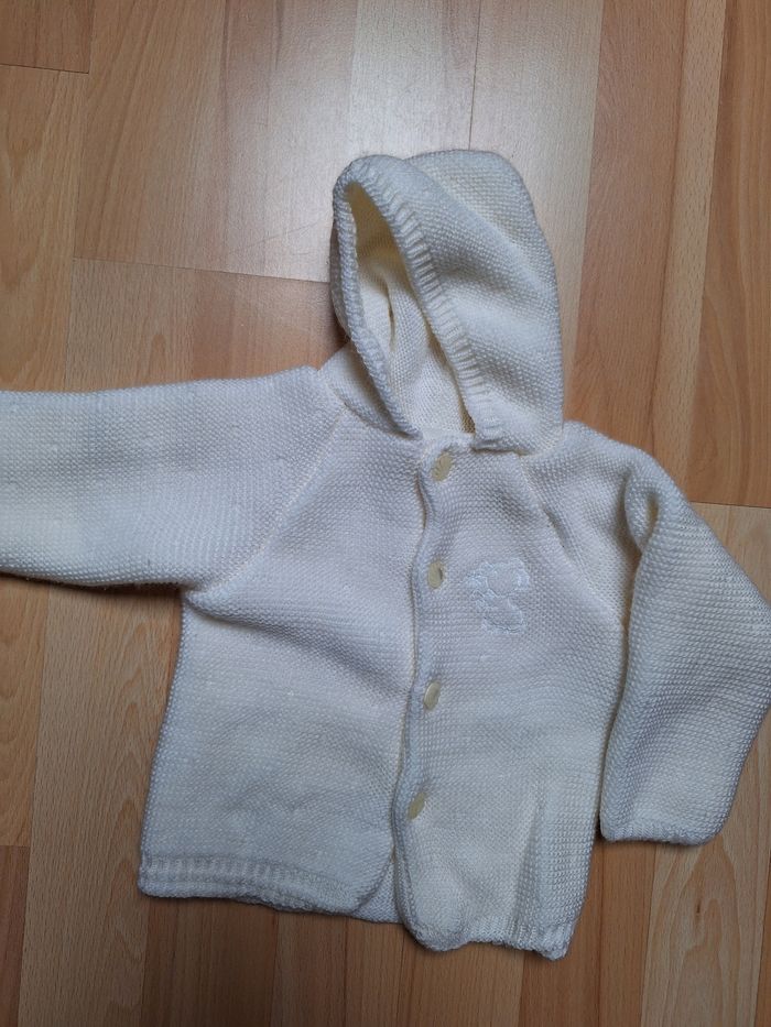 FILLE 1 MOIS N°733 gilet epais , capuche Creme , bouton 100% acrylique Taille 1 mois 1,50€ #kelly_fille1mois