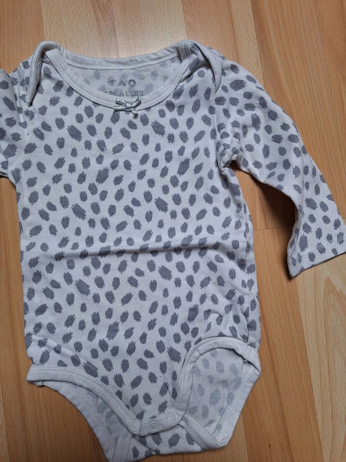 FILLE 6 MOIS N°771 bodie lm Blanc / gris Noeud au col Taille 6 mois Tape à l oeil 2€ #kelly_fille6mois