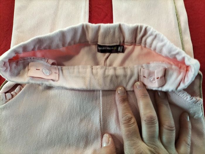 Pantalon à enfiler réglable à la taille rose poudré. A un papillon brodé sous une poche en 9ans marque sergent major a été portée aucun trou ni tâche en très bonne état (cf voir photos). #bouriquet79fille9ans