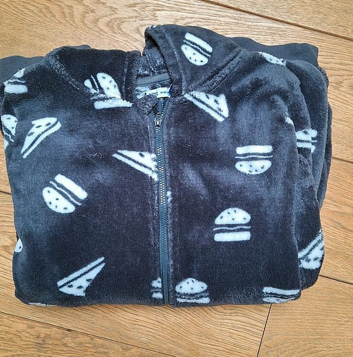 Belle combinaison bien chaude avec capuche. Motifs hamburgers. #fille8anscanellemauve #fille9anscanellemauve #fille10anscanellemauve #fille11anscanellemauve #fille12anscanellemauve