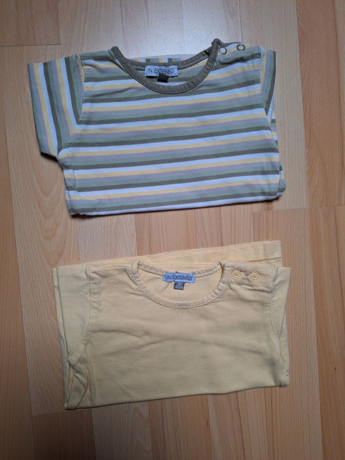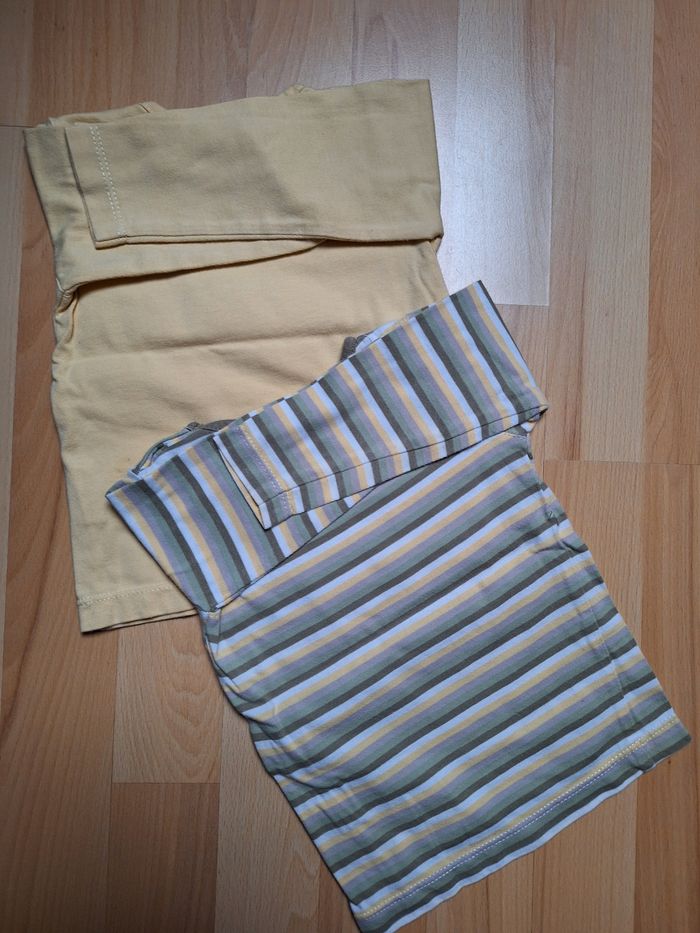 GARÇON 18 MOIS N°657 lot de 2 maillots Longue manche Rayé/ jaune vert Pression épaule 100% coton Taille 18 mois In extenso 2€ #kelly_garçon18mois