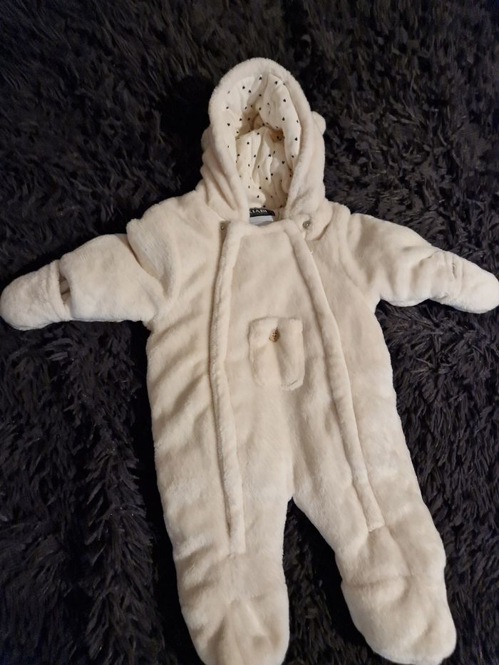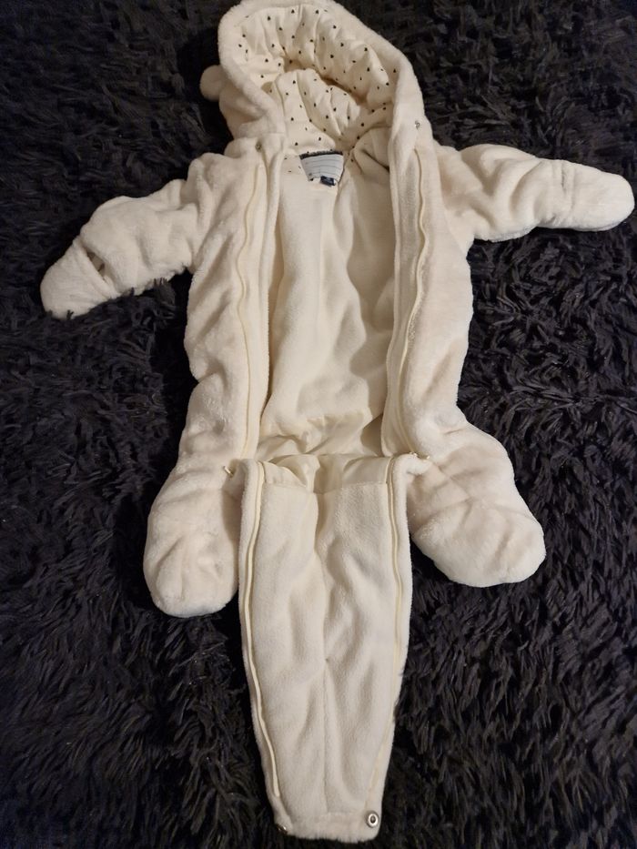 Combipilote ecru fourré polaire . Taille 3 mois très peu mise . Très bon état.