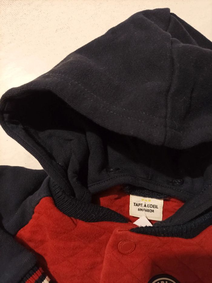 Veste Teddy avec capuche amovible, couleurs rouille et marine 6 mois (68cm) TAO Excellent état #vesteteddy #tao #tao6moisgarcon #6moisgarçon #momandebonheur_6mois