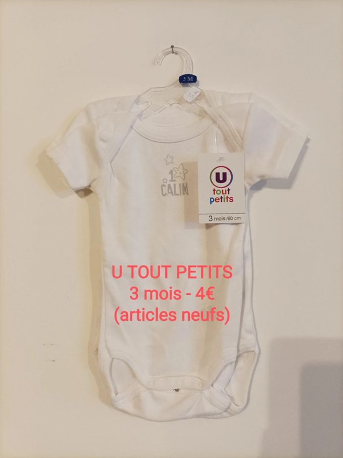 - NEUF - Lot de 2 bodies manches courtes, couleur blanche 3 mois (60cm) U TOUT PETITS - NEUF - #utoutpetits #utoutpetits3mois #body3mois #3mois #momandebonheur_3mois