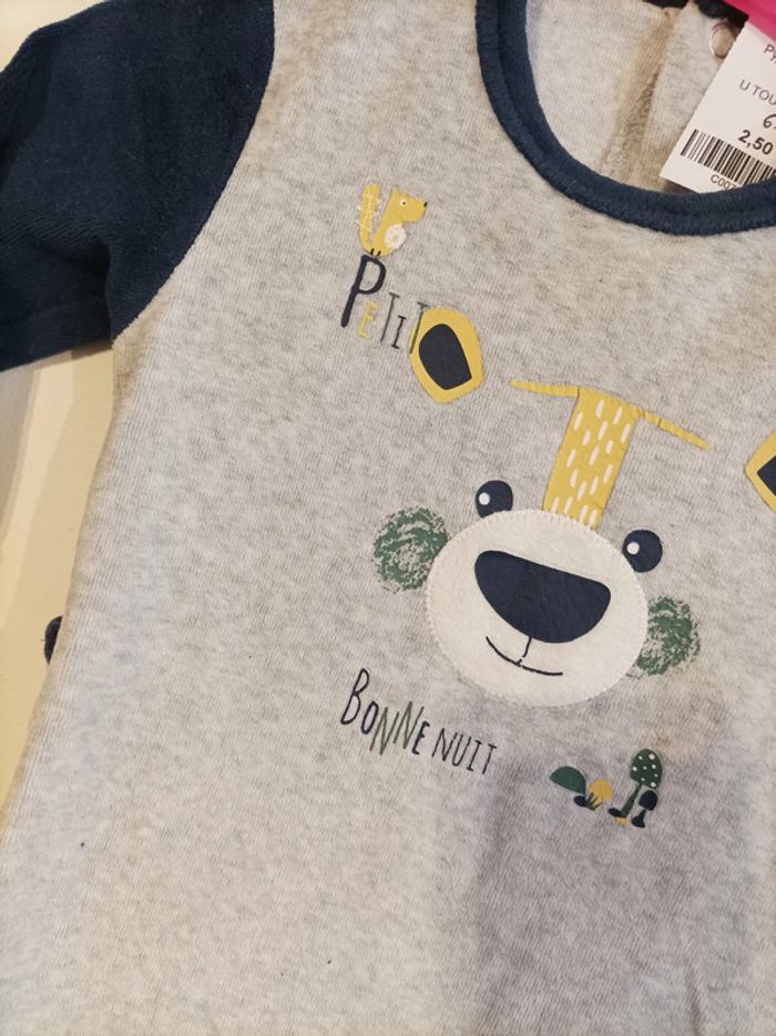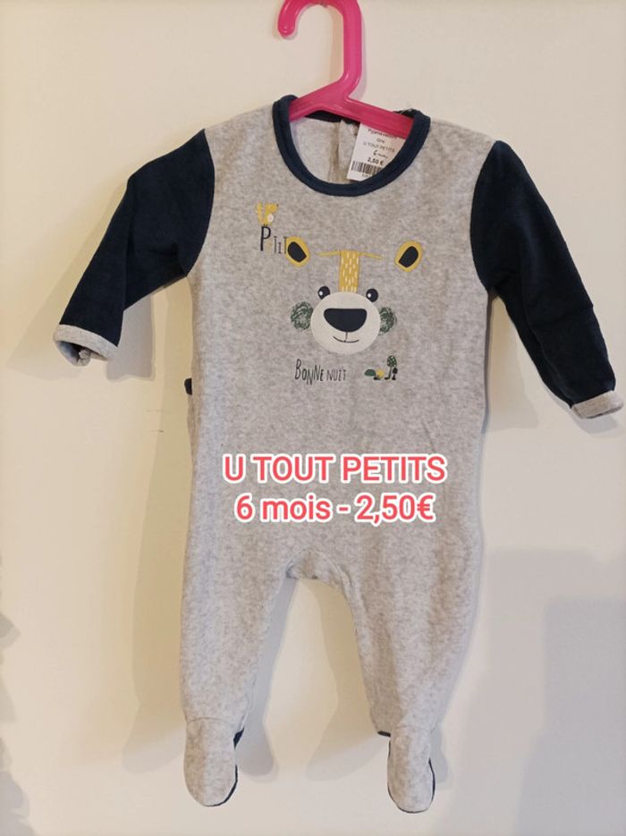 Pyjama velours, couleur grise 6 mois U TOUT PETITS #utoutpetits #utoutpetits6mois #pyjama6moisgarçon #momandebonheur