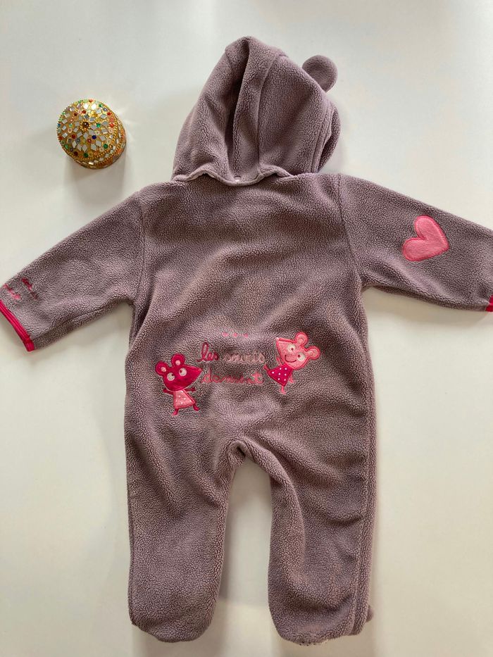 Combinaison polaire mauve/taupe taille 6 mois Du Pareil Au Même. Capuche amovible.