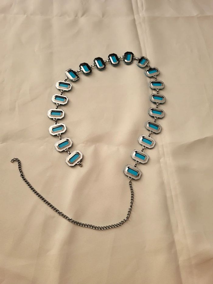 #ceinture #femme #chaine #argentée avec #pierres #turquoises #ajustable En #tresbonetat #ceinturesmelodyriri31 Taille unique (voir mesures sur photo)