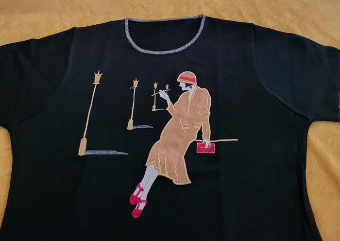 #Haut #teeshirt #pull #leger en #maille Composition: 50% #laine 50% #acrylique #brodé Illustré femme élégante paris #vintage des années 80' En #tresbonetat #taille38 (absence d'étiquette taille) #vintagemelodyriri31 #tailleMmelodyriri31