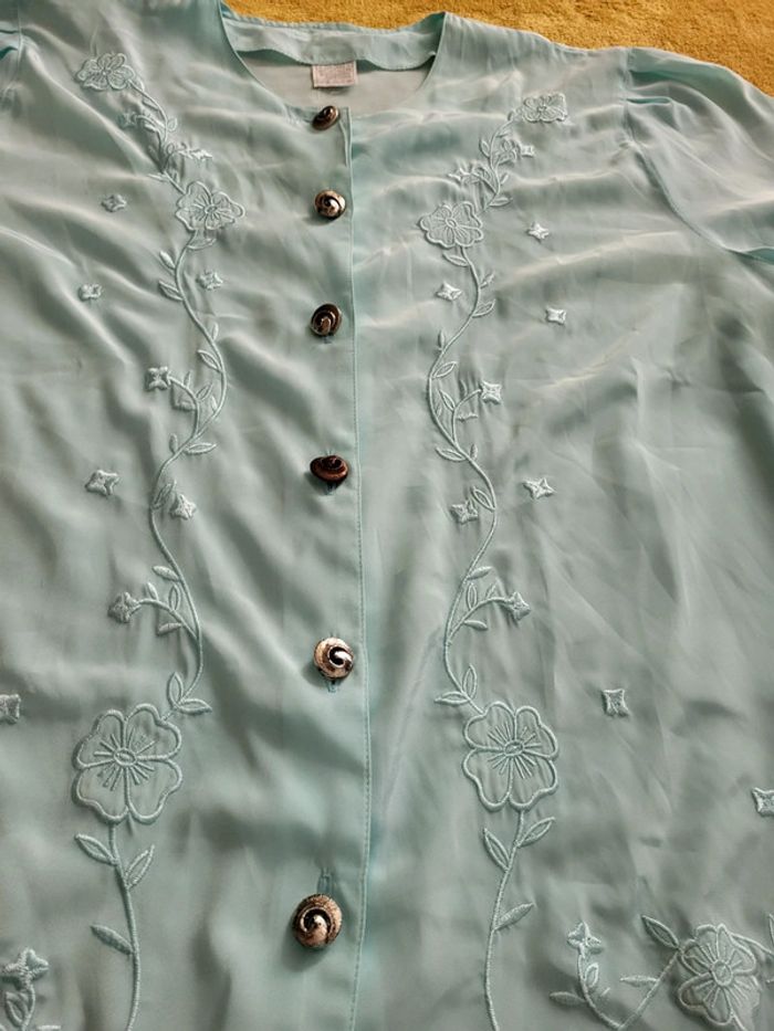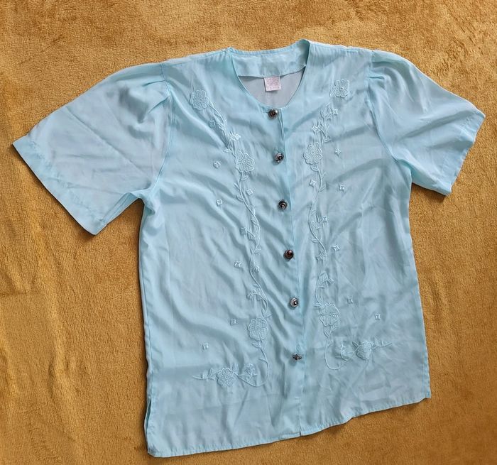#chemise #blouse #femme #vertd'eau #broderie #fleurie devant #légère (elle est transparente) Véritable #vintage Un la couleur du bouton de milieu est différente des autres (voir photo) En parfait état #taille42 #vintagemelodyriri31 #tailleXLmelodyriri31