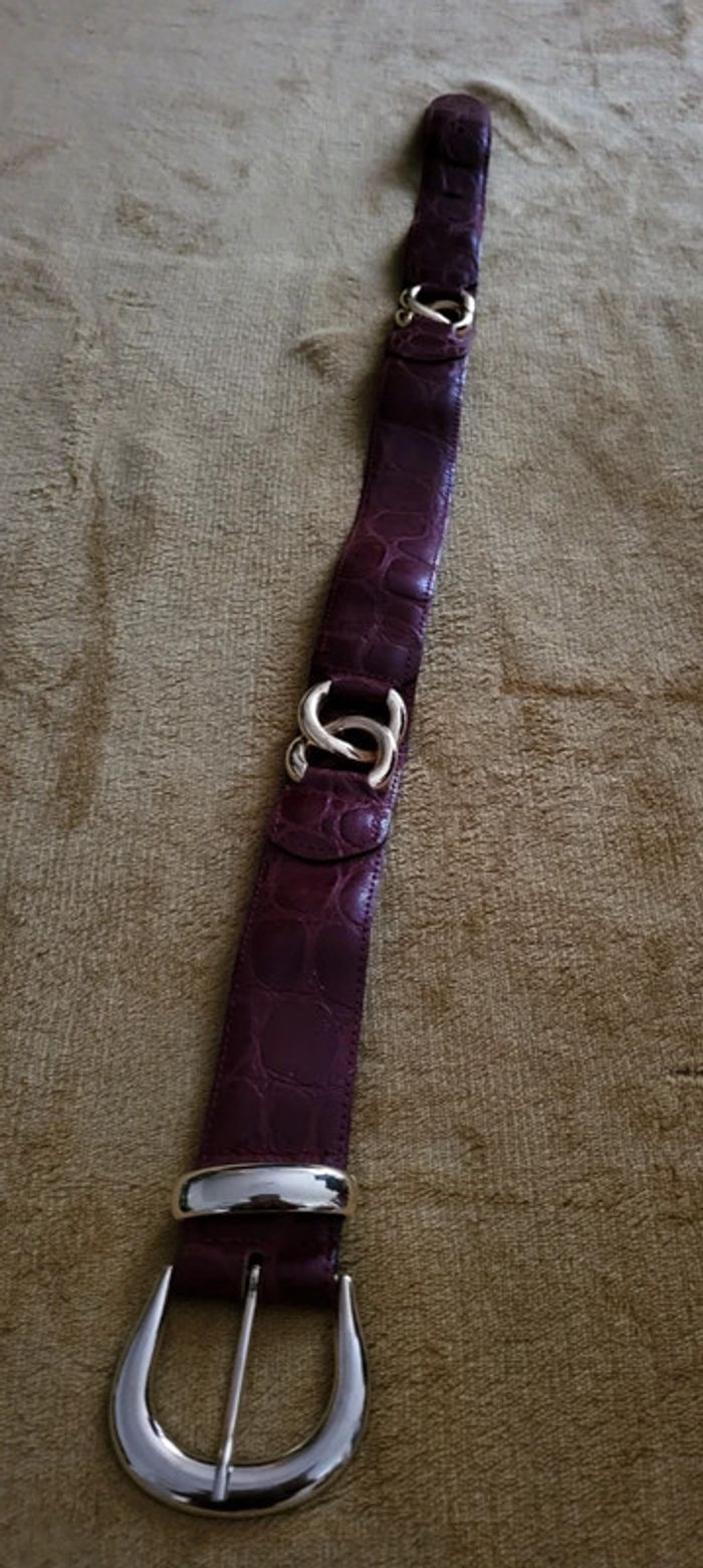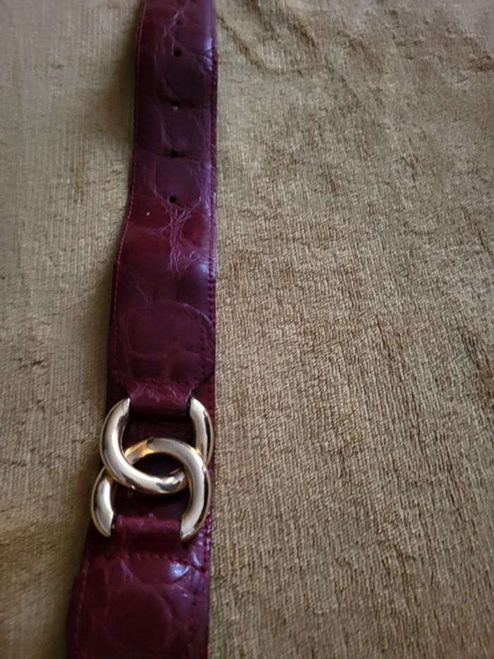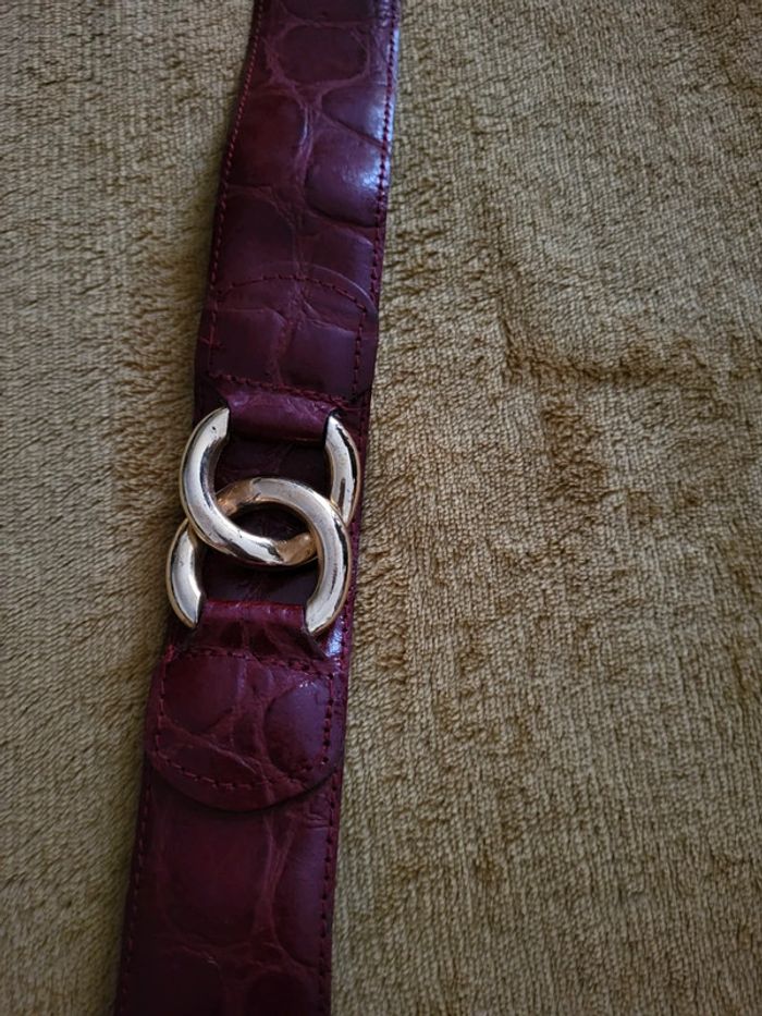 #ceinture #femme en #cuir imitation peau de serpent Couleur bordeaux avec des boucles chaînes dorées En #tresbonetat Taille 70 Véritable #vintage #fabricationfrancaise 🇨🇵 🇨🇵 🇨🇵 🇨🇵 #ceinturesmelodyriri31 #vintagemelodyriri31