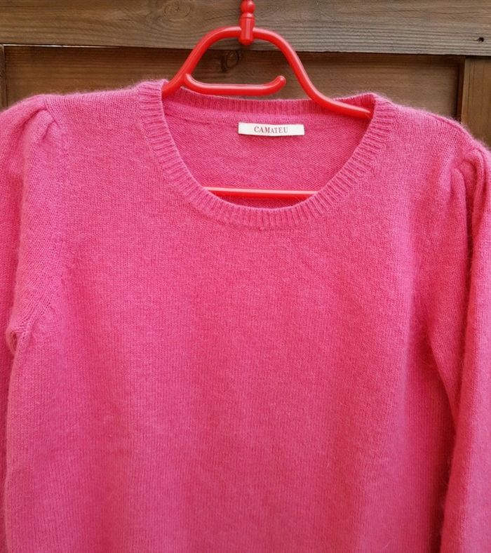 #pull #femme #hiver #chaud très #doux (j'ignore la matière car étiquette coupée!) Jolie finition #tailleS en #tresbonetat Couleur rose foncé Véritable #vintage des années 90 de chez #camaeiu #tailleSmelodyririr31 #pullmelodyriri31