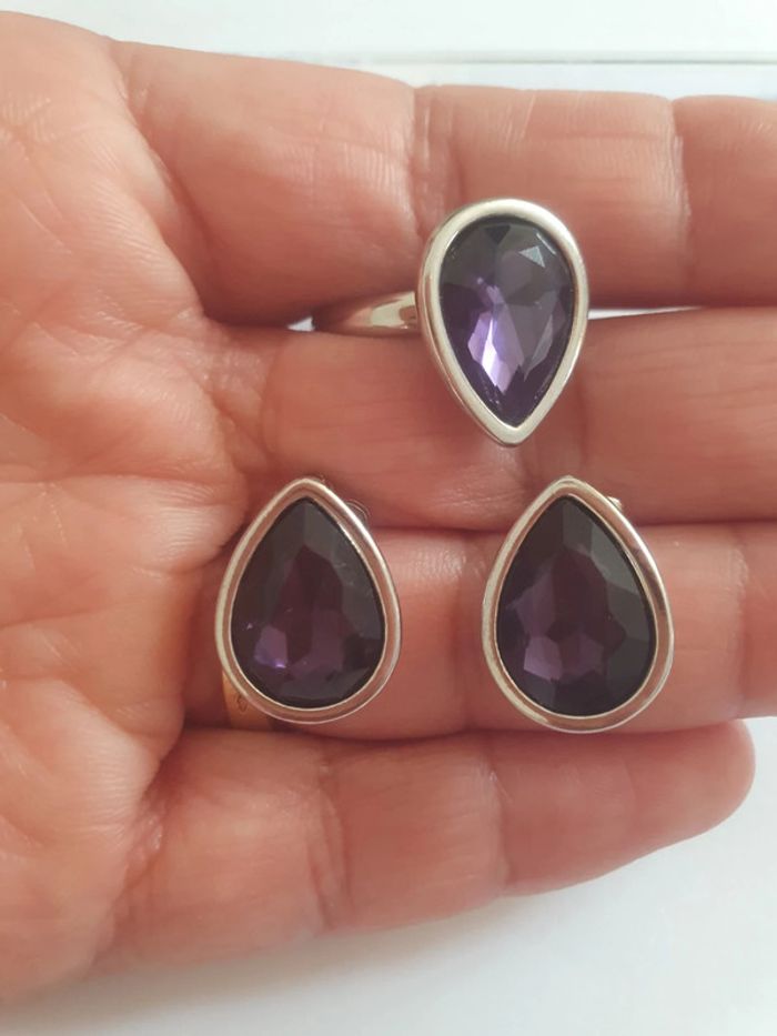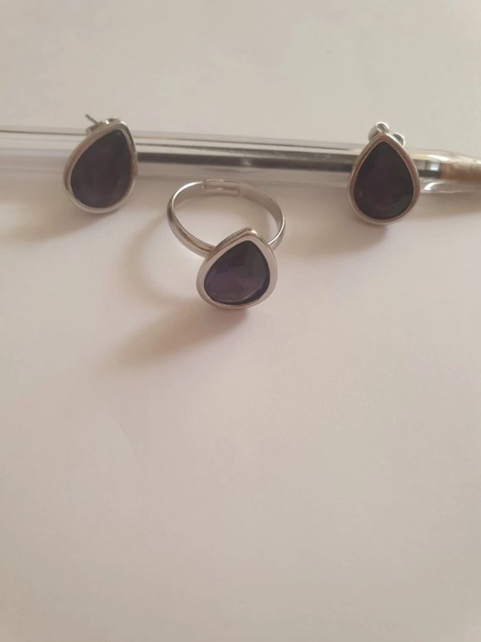 #ensemble #fantaisie #bouclesdoreilles et une #bague assortie Perle violette #neufs #accessoiresmelodyriri31