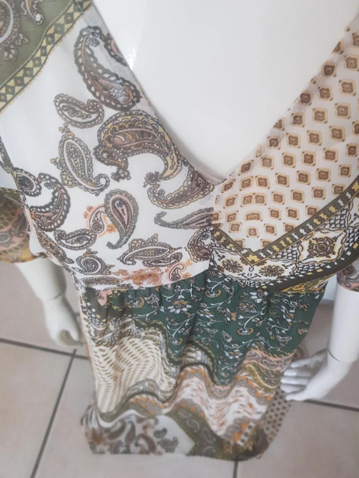 #robe #femme imprimé #fleurie #cachemire #mancheschauvesouris En #voile #doublée La doublure est un #fondderobe (fond de robe inclu) près de cœur #tailleXS en #tresbonetat #pimkie #tailleXSmelodyriri31
