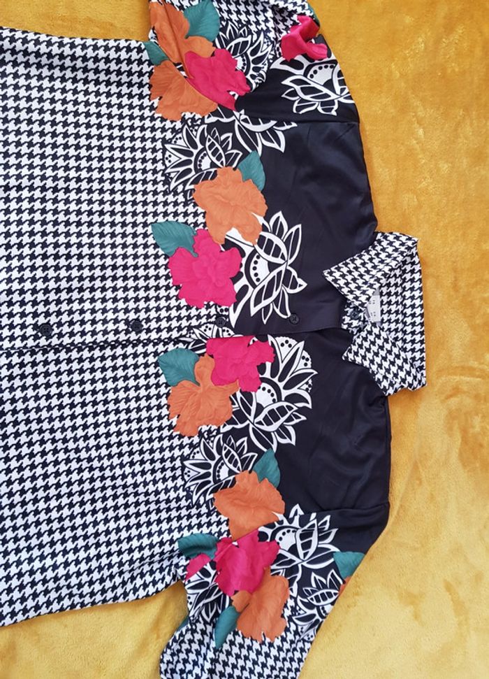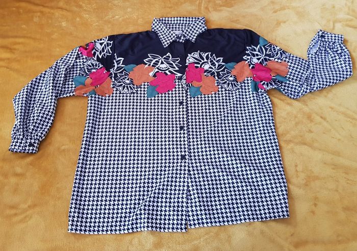 #chemise #femme imprimé #piedsdepoule et #fleurie Chemise avec manches #taille50 en #tresbonetat #taille5XLmelodyriri31