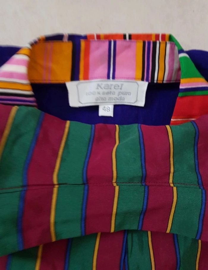 #chemise #femme #rayée Véritable #vintage En #soie (absence d'étiquette composition) #taille44 (absence d'étiquette taille, mais j'ai mis une comparaison d'une autre chemise de la même taille en photos, et y a les mesures également sur les photos!) En #tresbonetat parfait état ❌ en l'absence d'étiquette taille et surtout composition et pour éviter tout malentendu, je vends cette chemise pas cher au prix de POLYSTER #taille2XLmelodyriri31 #vintagemelodyriri31