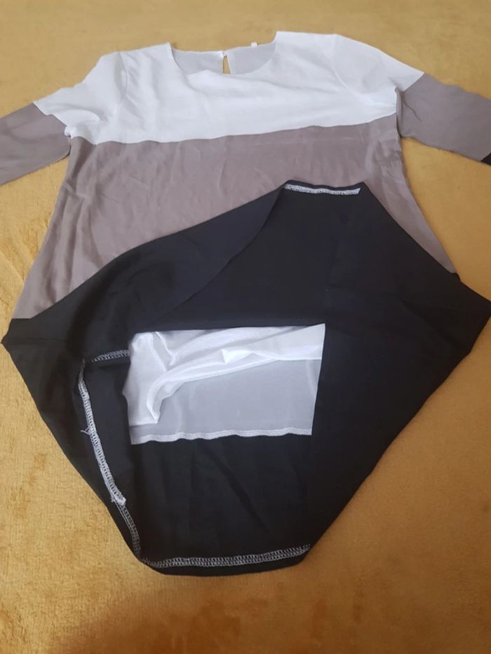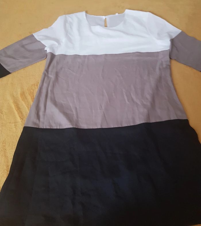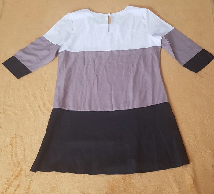 #robe #femme #droite #rayée blanc, beige et noir #doublée Manches 3/4 #tailleL en #tresbonetat #tailleLmelodyriri31