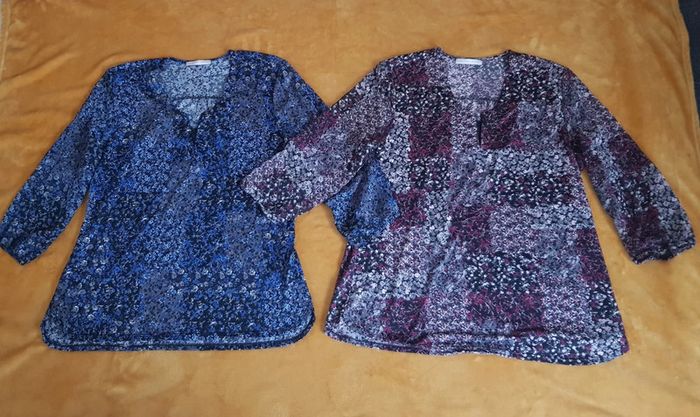 Lot de 2 #blouse #femme #fleurie #extensible Detail #dentelle au niveau de decolté manches 3/4 en tulle transparent #taille42 en #tresbonetat (absence d'étiquette) #tailleXLmelodyriri31 Possibilité de vendre séparément