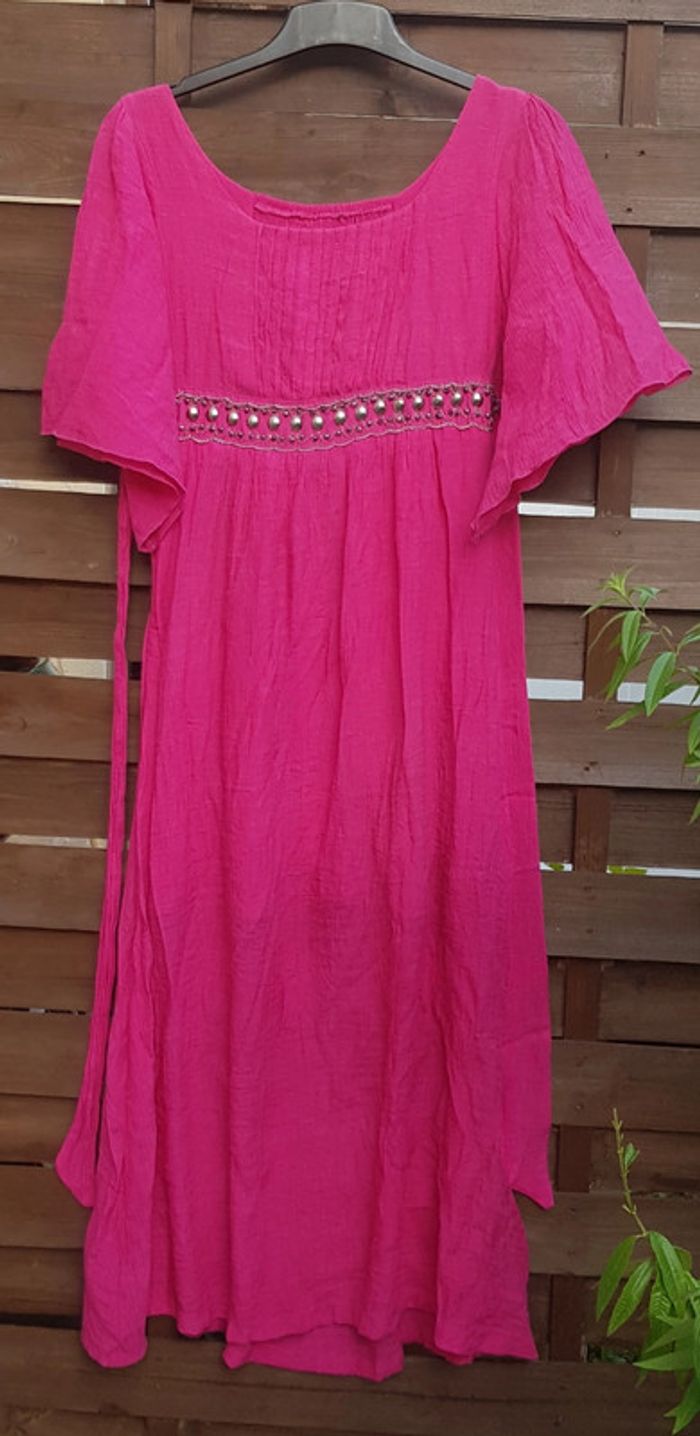 #robe #femme #longue #doublée jusqu'au genoux 100% #coton Manches larges Détail #perlé avec ceinture intégrée #tailleM (etiquette taille coupée) #tailleMmelodyriri31 #vintagemelodyriri31