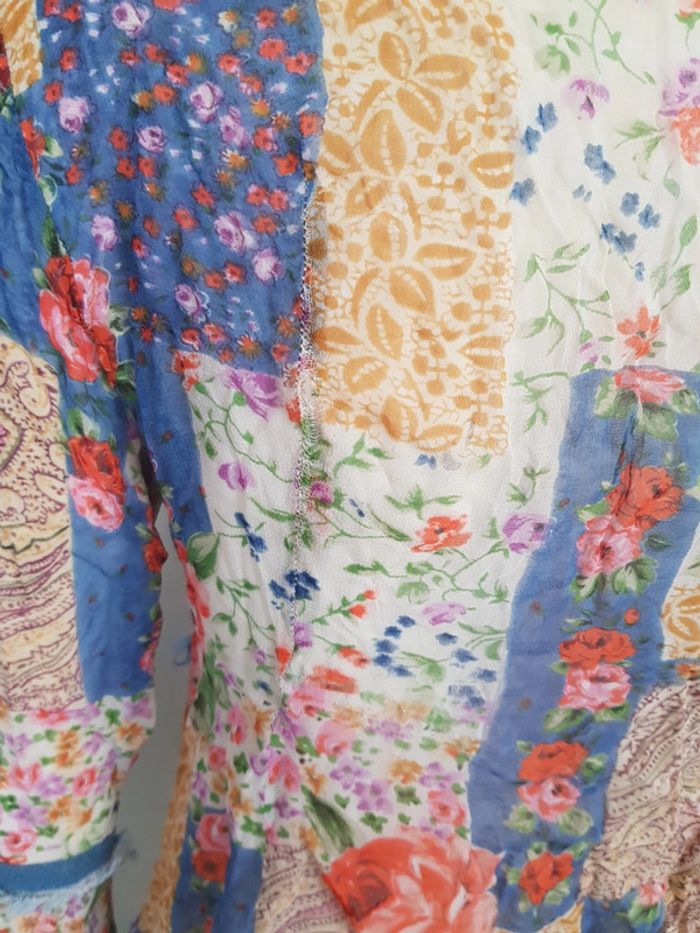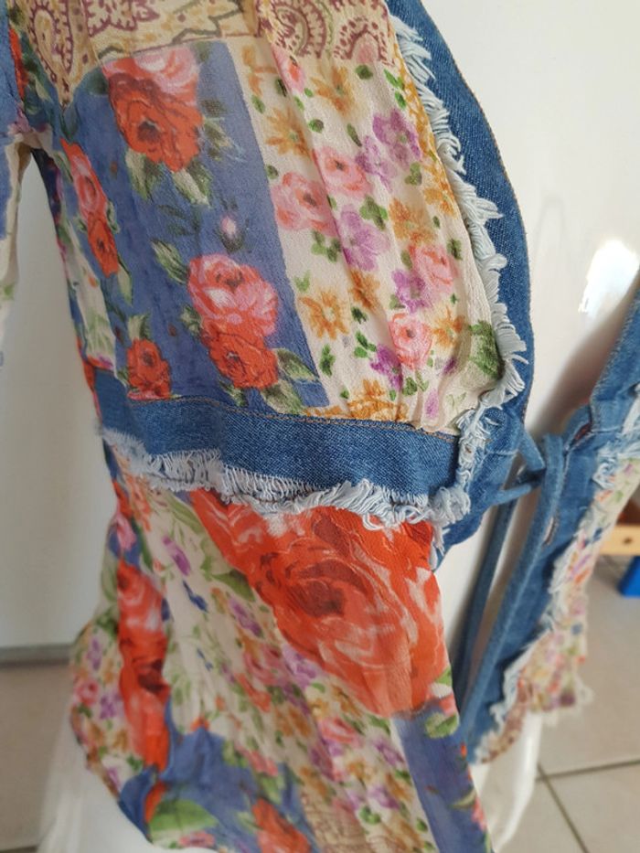 Chemise bimatiere, jean et tissu fleurie transparent, à nouer - photo numéro 8