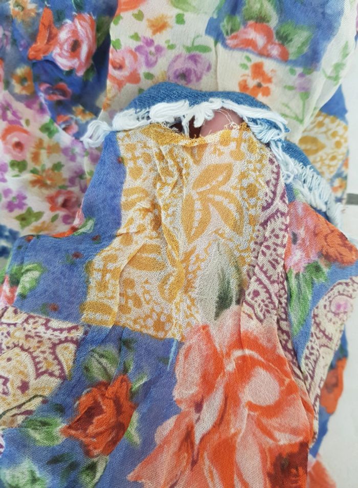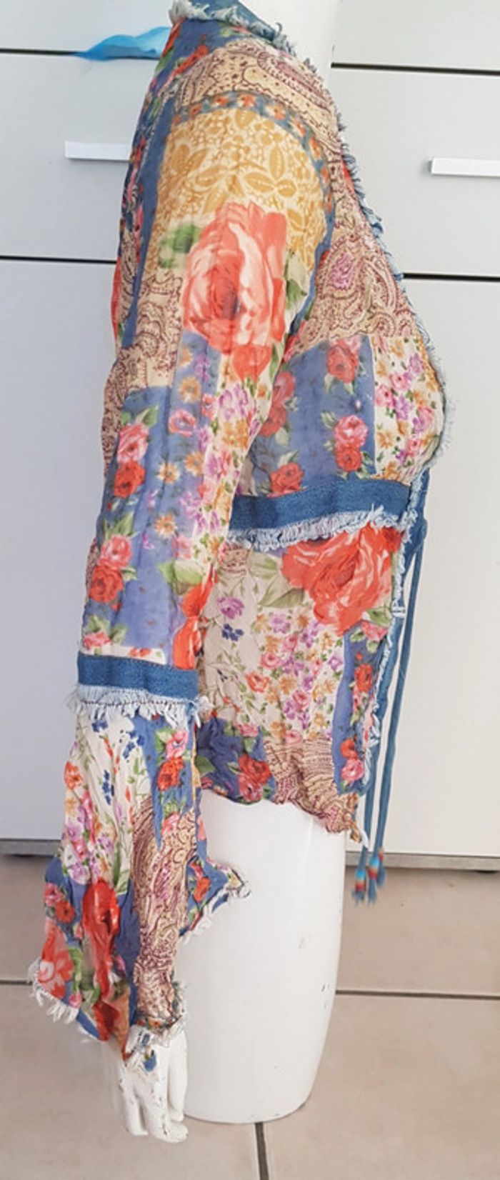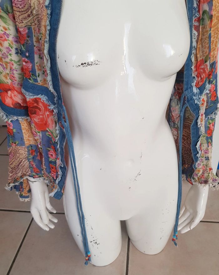 Chemise bimatiere, jean et tissu fleurie transparent, à nouer - photo numéro 10