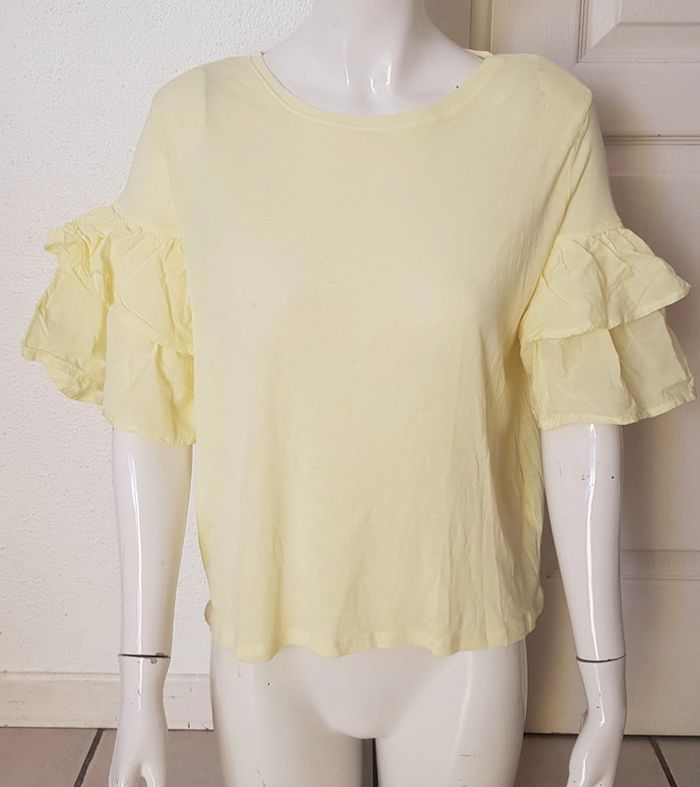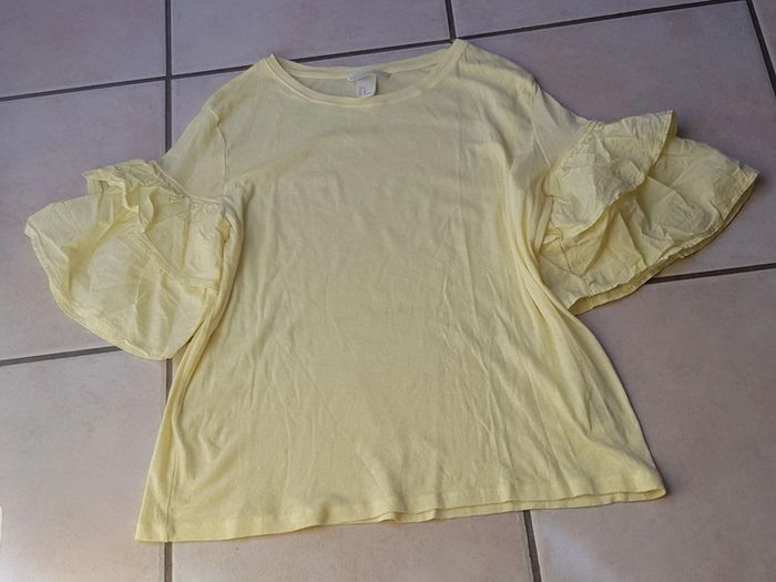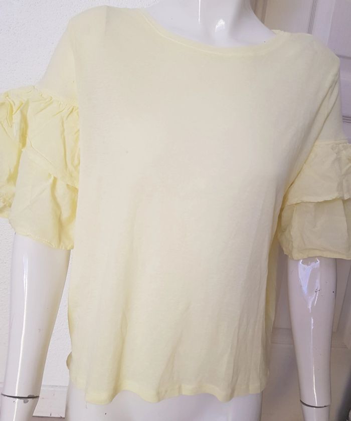#teeshirtfemme jaune #pastel à manches #volantées En #coton #tailleM de chez #hetm En #tresbonetat #tailleMmelodyriri31